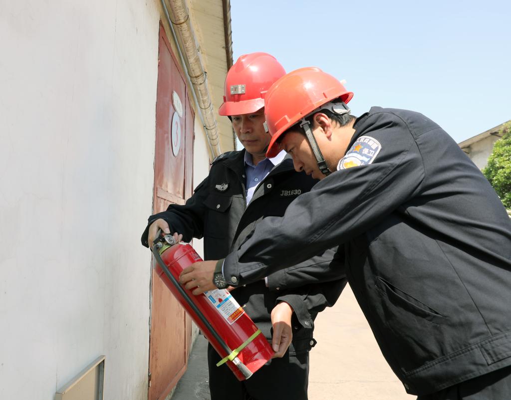 物業(yè)公司職工程永、陳燕飛檢查消防設(shè)施。“節(jié)日期間的消防安全尤為重要,越是放假了,我們?cè)绞且哟笱膊榱Χ龋瑘?jiān)決杜絕消防隱患。”