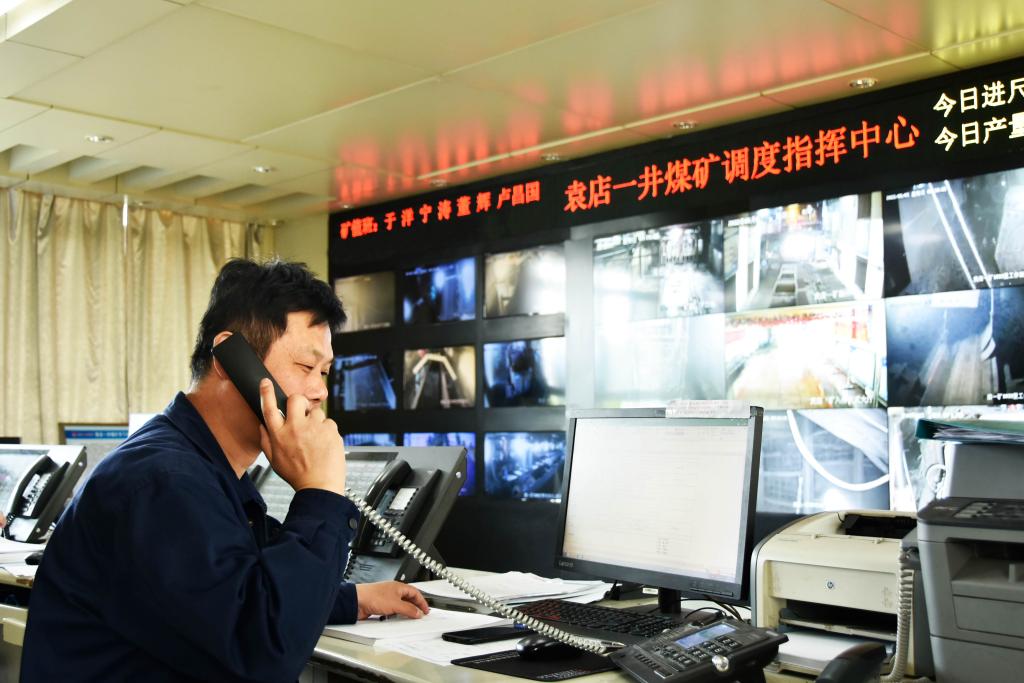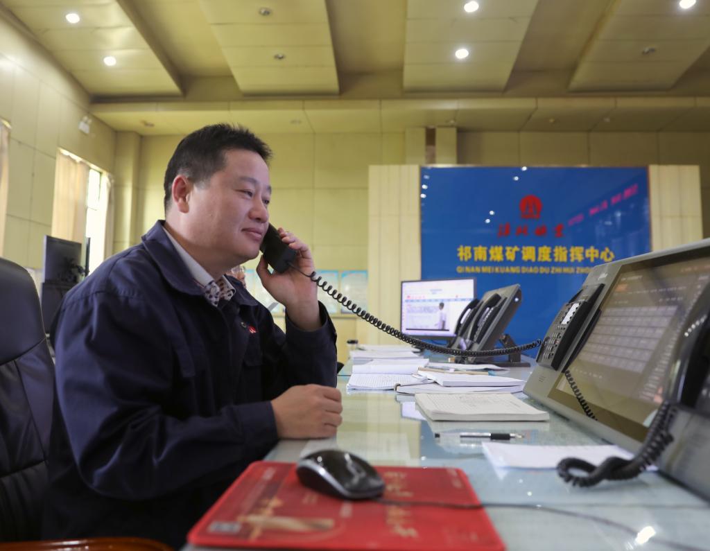 調(diào)度員余勇敢正在接聽(tīng)井下生產(chǎn)電話。“要嚴(yán)格落實(shí)礦主要領(lǐng)導(dǎo)的要求,淡化節(jié)日氛圍,抓好安全生產(chǎn),我們是礦安全生產(chǎn)的中樞,更是不能有絲毫大意。”