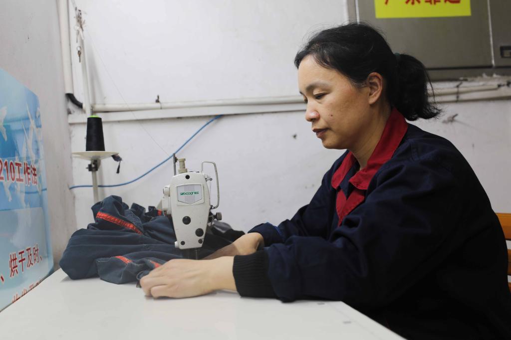 洗衣工楊襯心正在為職工縫補(bǔ)工作服。“節(jié)日期間一線師傅們不放假,我們就要服務(wù)到位,及時(shí)把破損的衣服縫補(bǔ)好,就和他們及時(shí)消除安全隱患一樣,一刻也不能耽擱。”