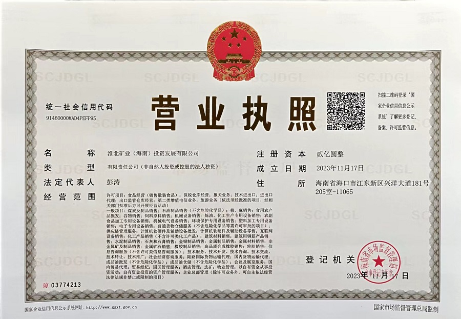 淮北礦業(yè)(海南)投資發(fā)展有限公司注冊(cè)成立