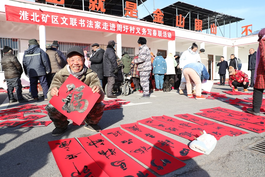 1月23日,淮北礦業(yè)集團(tuán)工會(huì)組織礦區(qū)書(shū)法家深入定點(diǎn)幫扶鄉(xiāng)村——濉溪縣鐵佛鎮(zhèn)周圩村,開(kāi)啟新年義務(wù)書(shū)贈(zèng)春聯(lián)系列活動(dòng),現(xiàn)場(chǎng)揮毫潑墨“迎新春、話(huà)小康、助振興”,為村民送上新春祝福和美好祝愿,為建設(shè)宜居宜業(yè)和美鄉(xiāng)村,加快鄉(xiāng)村振興匯聚精神力量。