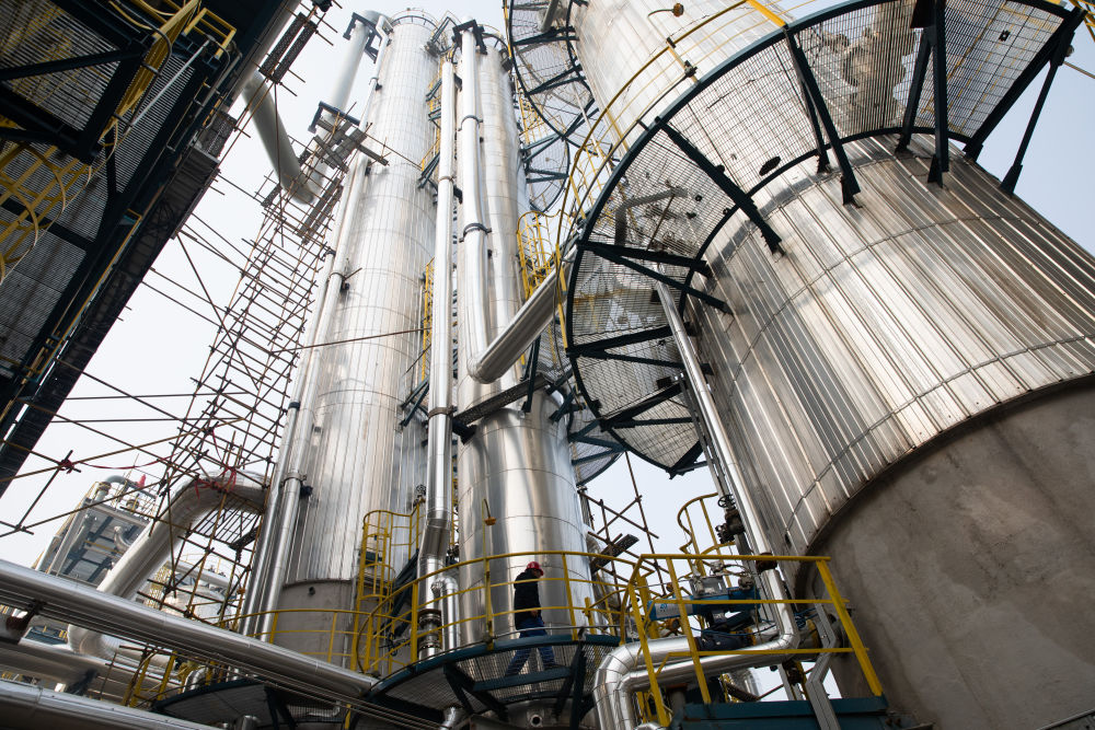 2023年12月28日,在淮北礦業集團碳鑫科技有限公司,工作人員在調試60萬噸/年乙醇生產裝置設備。新華社記者 金立旺 攝