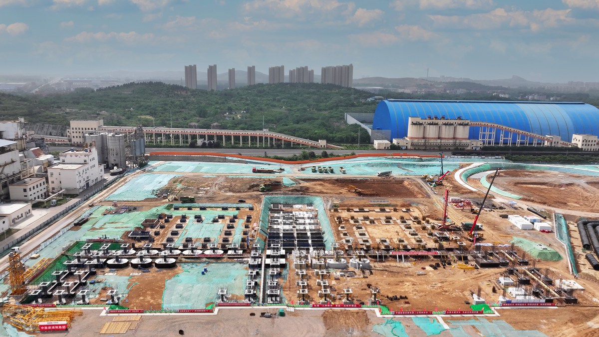 5月13日,航拍聚能發電公司2×660MW超超臨界機組項目主機廠房樁基施工現場