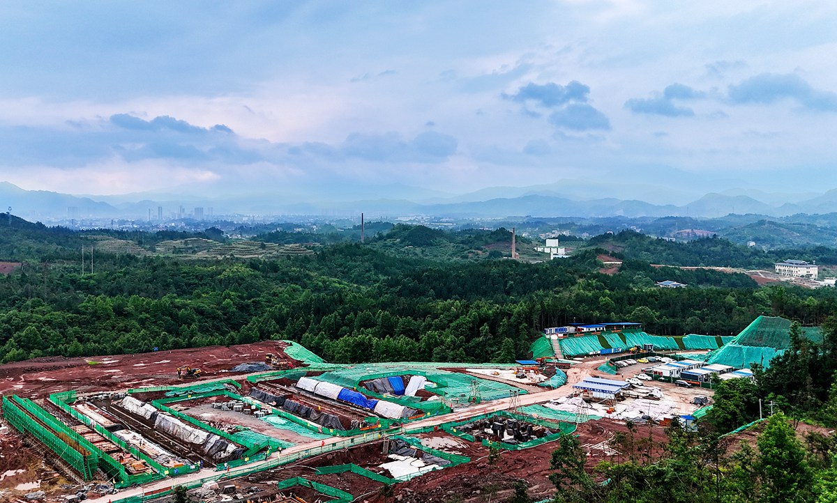 5月13日,航拍雷鳴科化靖州八姑巖礦山建設項目基建施工現場