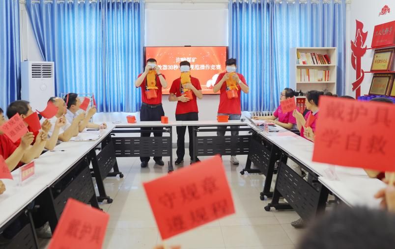 圍繞礦井安全生產中心工作,許疃礦送訓上門。“安全生產月”期間,該礦采煤系統(tǒng)將安全知識競賽升級為“擂臺對壘模式”,增加區(qū)隊之間互問和比拼環(huán)節(jié),尤其是“安全隱患我查找”搶答和“自救器盲帶30秒規(guī)范操作大比拼”有獎活動,點燃了員工學習掌握安全知識、技能的熱情。