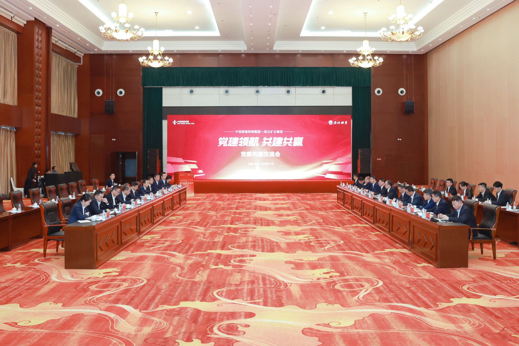 11月13日,淮北礦業集團與中信泰富特鋼集團舉辦黨委共建暨商務技術交流會。淮北礦業集團領導方良才、許建清、劉杰、劉杰(工會),中信泰富特鋼集團領導錢剛、郟靜洪出席會議。